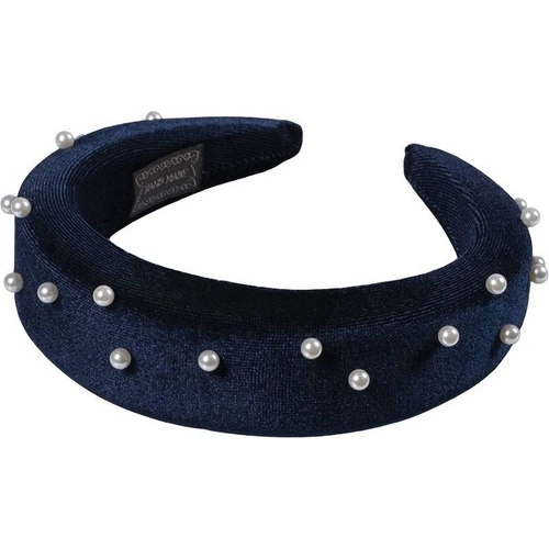 Welurowa opaska do włosów z ozdobnymi perełkami.