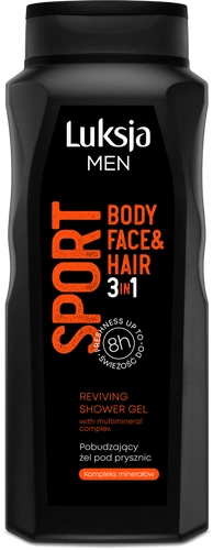 Pobudzający żel pod prysznic 3w1 Luksja Men Sport przeznaczony do ciała, twarzy i włosów usuwa zanieczyszczenia, jednocześnie dbając o skórę. Został wzbogacony o minerały, które stymulują uwalnianie energii oraz zapewniają ultraorzeźwiający prysznic.