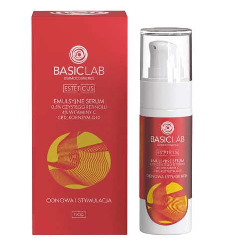 Odkryj moc zaawansowanej pielęgnacji z BasicLab Emulsyjnym Serum, które łączy w sobie innowacyjne składniki aktywne, aby zapewnić Twojej skórze intensywną regenerację i widoczne efekty. To serum na noc, o lekkiej emulsji, zawiera 0,5% czystego retinolu, który jest znany ze swoich właściwości przeciwzmarszczkowych oraz korygujących.